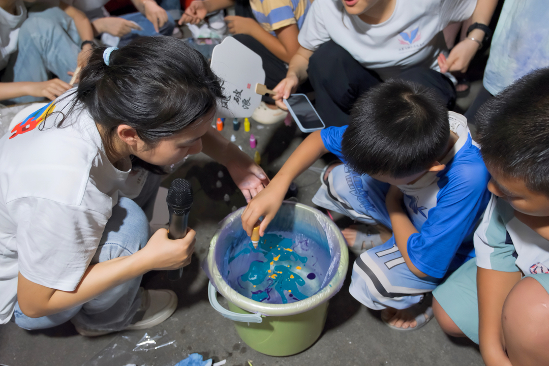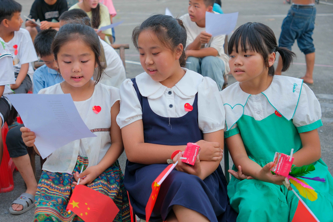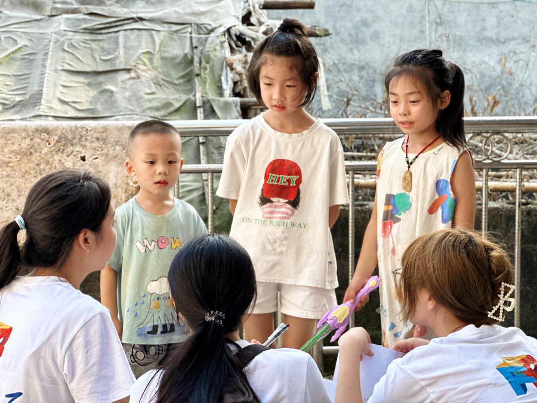 志愿者们与当地儿童一起开展“非遗漆扇”制作教学活动,通过亲手制作漆扇,让孩子们在快乐中感受到了传统文化的魅力。此外,他们还组织了爱国教育学习交流活动,为孩子们讲述中华人民共和国的光辉历程和英雄人物的事迹,激发他们的爱国热情和社会责任感。他们深入走访当地的农户,与当地的孩子们倾心交流,倾听他们的心声,深入了解他们的需求与生活境遇,为孩子们送去生活、学习用品以及益智玩具等物资。同时,积极与家长交流,为孩子们的成长提供宝贵的咨询和建议,助力他们茁壮成长。