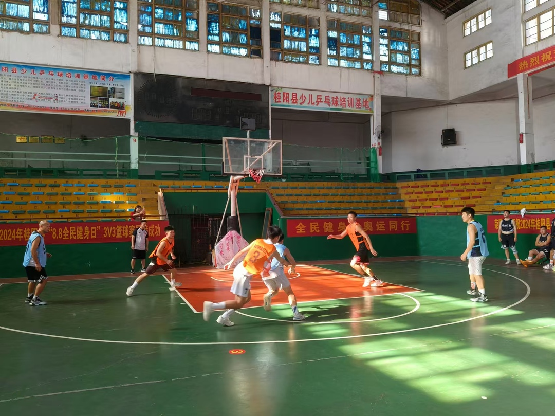 新桂阳8月9日讯(记者 邓明俊)8月8日,我县开展以“全民健身•绘就幸福生活”为主题的3V3篮球比赛。