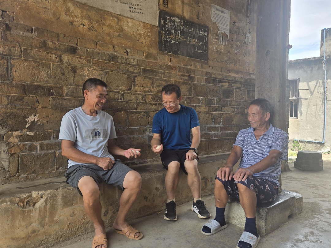 一大早,何忠文像往常一样开始了走访工作。在凉亭里,何忠文与村民闲话家常,问候五保户村民生活情况。今年7月底,粮源村环村公路、20亩灌溉水库建设项目陆续动工。如今,环村公路已经完工,村容村貌有了显著改善,村民们满意度很高。