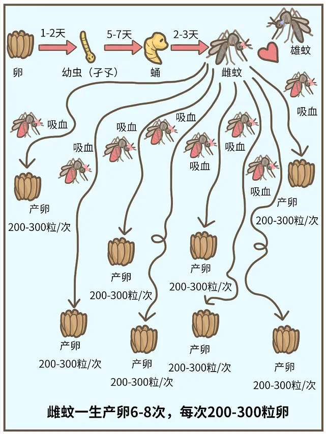 蚊子叮人的频次与它的寿命长短、人口密度、防蚊措施、灭蚊强度等因素有关。