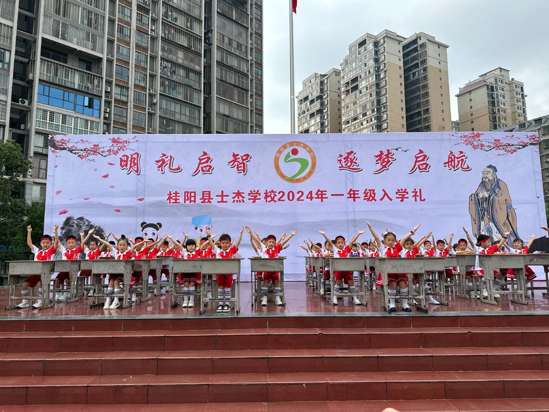 新桂阳9月20日讯(记者 刘娣 邓明俊)9月19日,士杰学校举行2024年“明礼启智•筑梦启航”一年级新生入学礼活动。