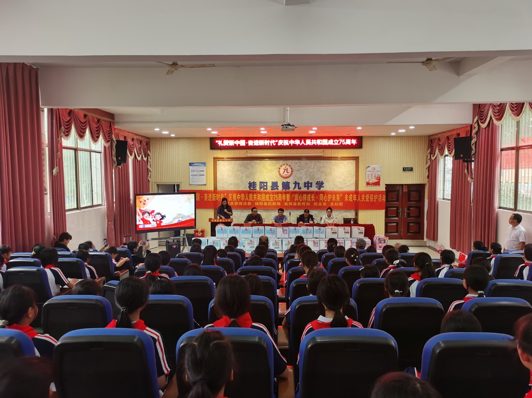 新桂阳9月27日讯(记者 周立志)9月26日,“礼赞新中国·奋进新时代”庆祝中华人民共和国成立75周年暨“润心伴成长·同心护未来”未成年人关爱保护活动在桂阳九中举行。