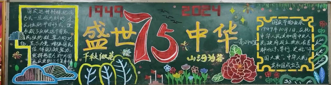 为厚植家国情怀,进一步推进校园文化建设,培养学生爱国、爱家、爱民族的优秀品德,学校开展了“喜迎国庆、礼赞祖国”为主题的黑板报评选活动。各班积极响应,围绕国庆主题,结合班级特色精心设计,创作出了一幅幅内容丰富、形式多样、色彩鲜艳的黑板报。