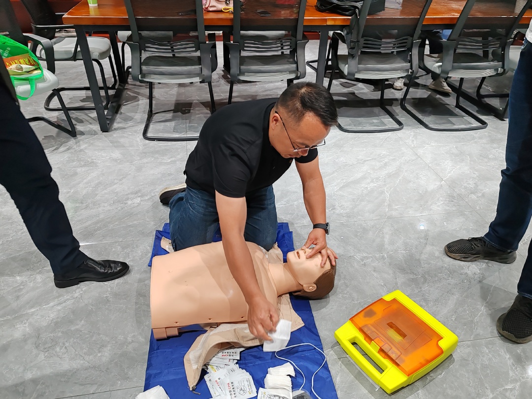 随后,学员们分组进行了心肺复苏的现场演练。通过模拟紧急情况,学员们实际操作了心肺复苏的各个步骤,直观地感受到了在紧急情况下如何科学有效地进行抢救。