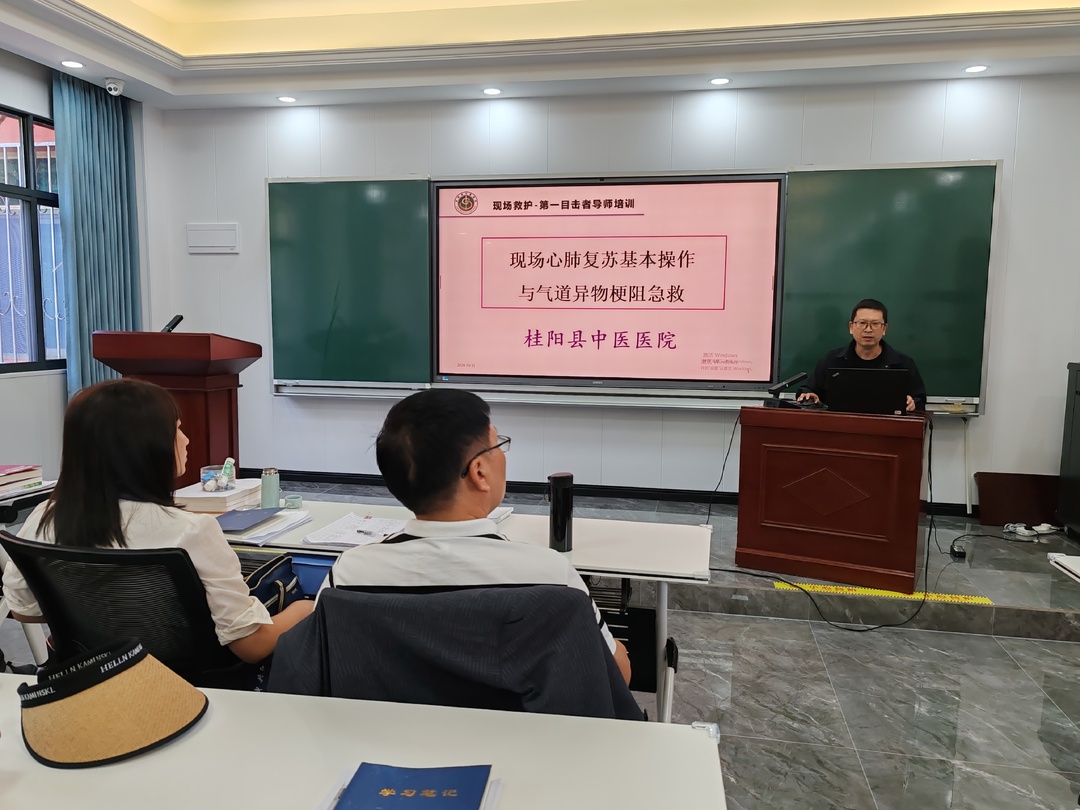 课程伊始,县中医医院急诊急救专家欧阳江现场演示了心跳呼吸骤停患者急救的黄金时间对于挽救生命的重要性,详细讲解了急救的基本步骤、技巧、方法,让学员们对急救有了系统的认识。