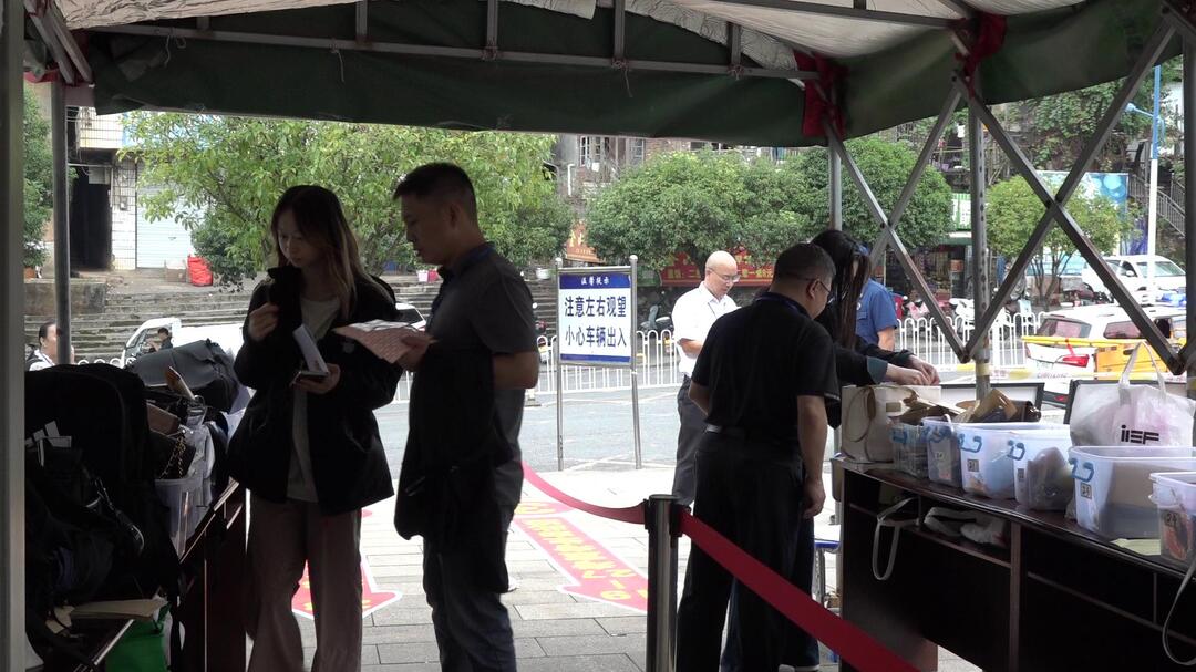 记者看到,考生在考点入口处进行身份核验后,经智能安检门安检通过,陆续进入考场。