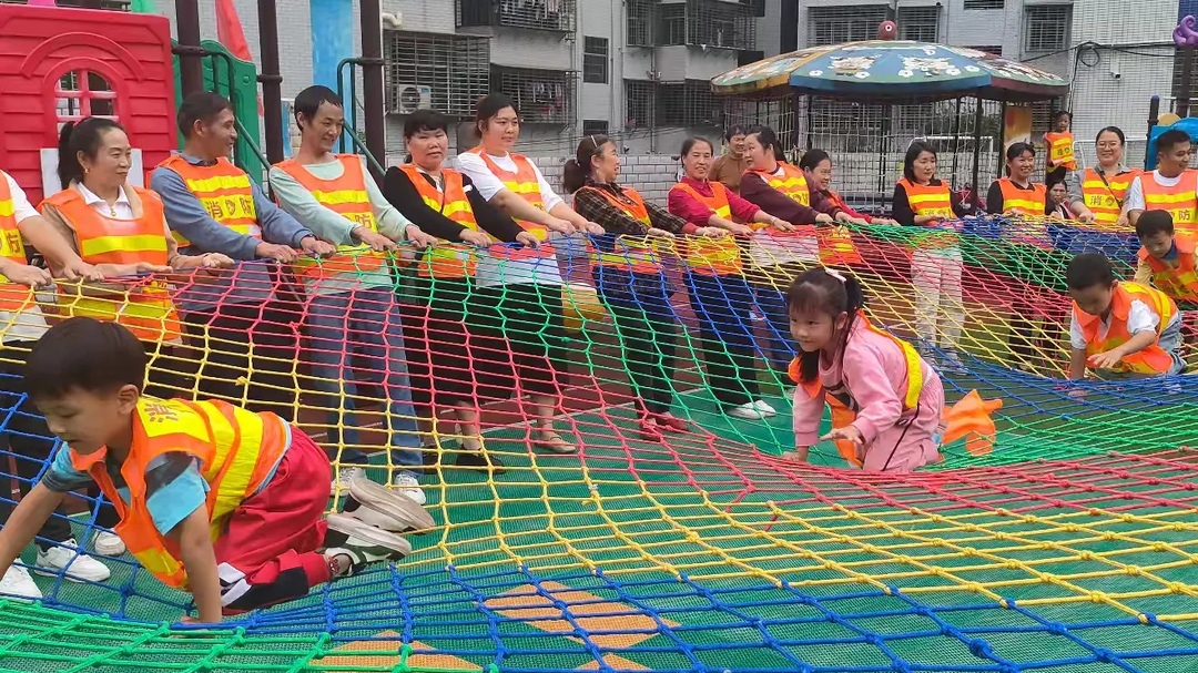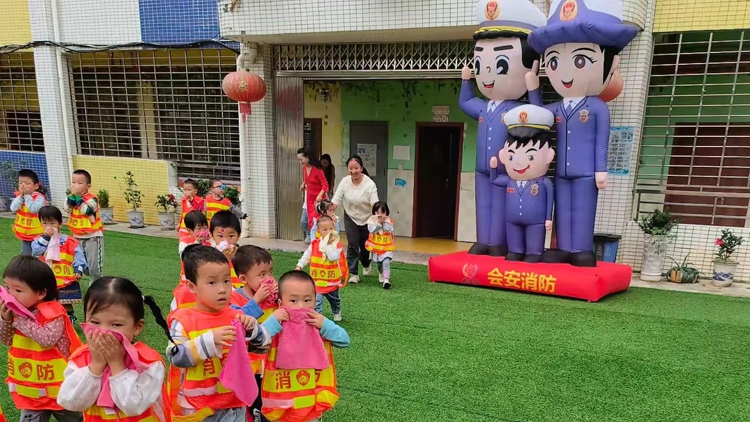 接下来,幼儿园还开展了消防亲子活动,在家长的陪伴下,孩子们挑战攀爬网和逃生屋,体验了消防亲子活动的乐趣。