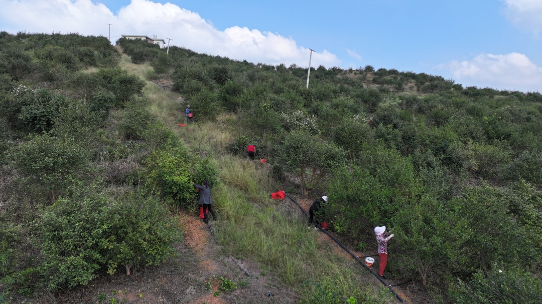 樟市镇油茶种植历史悠久,镇内山多地少、气候适宜、土壤偏酸,为油茶林生长提供了优越的条件。2011年,油茶种植基地建成以来,当地采用“村集体荒山入股,企业投资经营”的模式,不仅给种植户带来可观的经济收益,同时还解决了周边村民的就业问题。“以前我们这里是一片荒山,我们看准了这片山的土质,开始种植油茶树。这些年来油茶产量稳定,这片油茶基地的种植面积已经扩大到1500亩,我们的销售收入能达到300万元以上。”秦红梅介绍道。