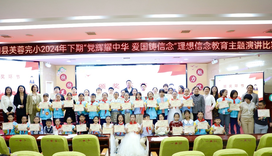 新桂阳10月27日讯(通讯员 李亚琴)10月25日,芙蓉完小举行“党辉耀中华 爱国铸信念”演讲比赛。
