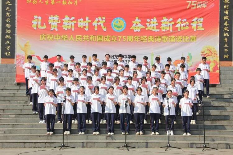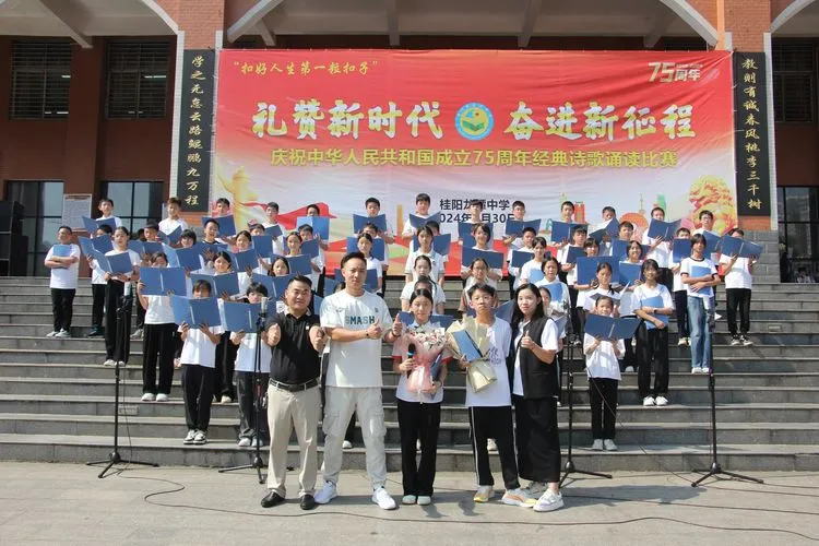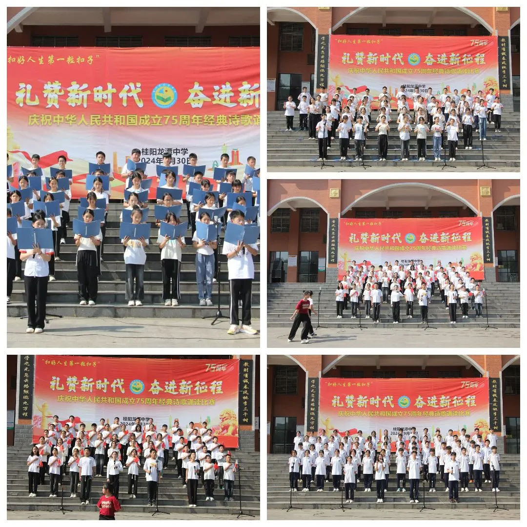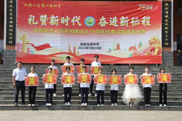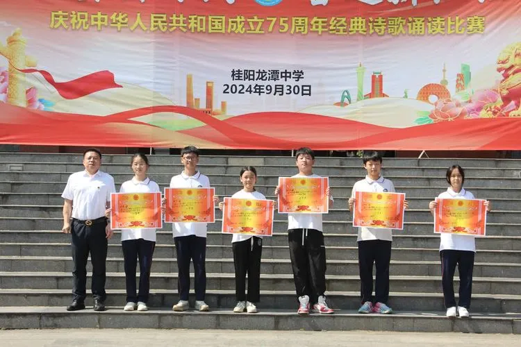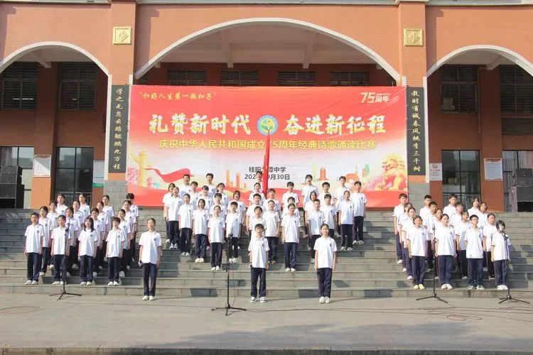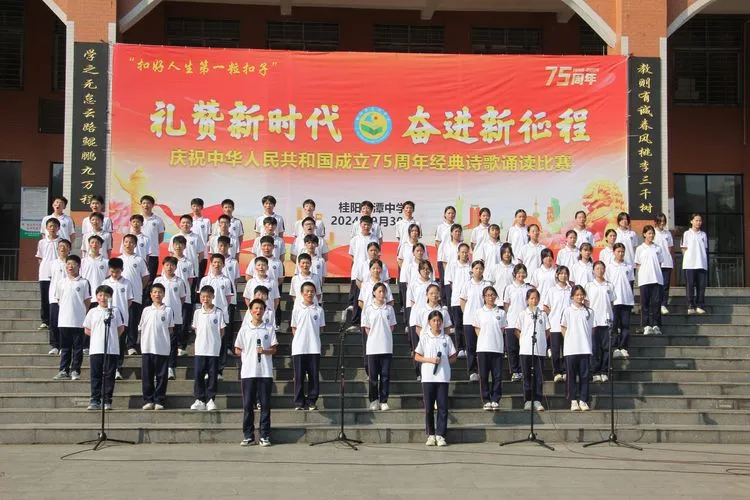 辉煌璀璨七十五,盛世华章耀神州;砥砺奋进新时代,同心共筑中国梦。为深入贯彻党的二十大和二十届三中全会精神,全面落实立德树人根本任务。9月30日上午,桂阳县龙潭中学在学校广场举行了迎国庆经典诗歌朗诵比赛活动。