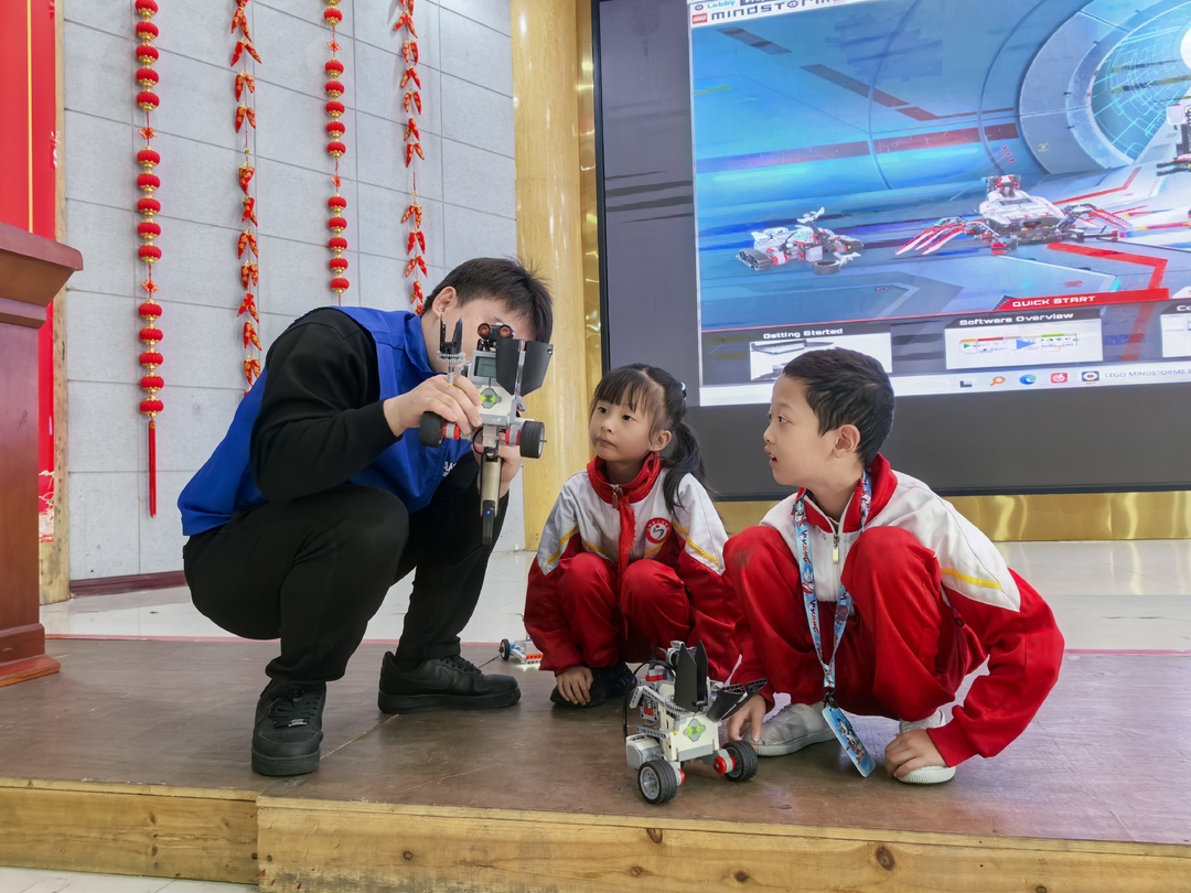 此次科技实践课程内容丰富多样,涵盖机器人编程、无人机课、科技创新课等多个板块。专业科技指导老师通过生动有趣的讲解和示范,让孩子们迅速沉浸其中。在机器人搭建区中,大家齐心协力,将一个个零件组合成形态各异的机器人。科学小实验让他们惊叹不已,更是激发了孩子们的探索欲望。
