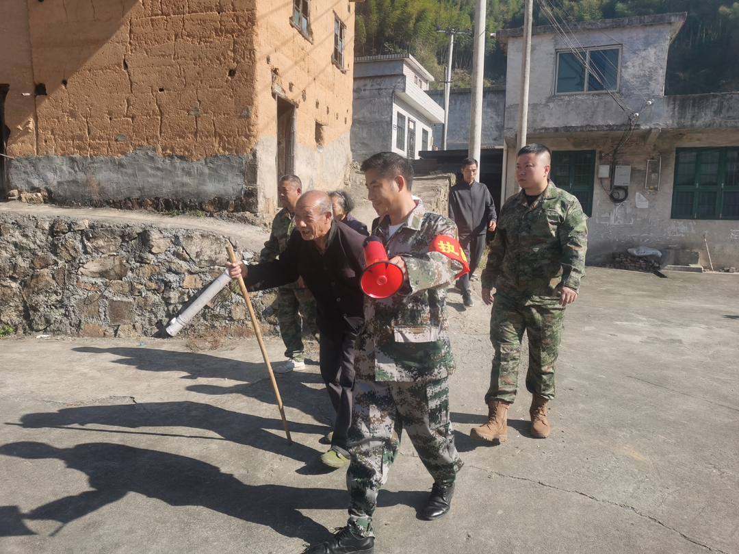 基干民兵应急排按照“贴近实战、突出重点、注重实效”的原则,模拟在地质灾害发生时,按照险情,迅速启动地质灾害避险应急预案,对长期在家及偶然入住15户,32人,分组分片,一对一、全覆盖帮扶转移独居空巢老人、留守妇女儿童及老弱病残群众。