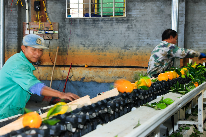 “现在果园丰收了,我到这里做点事也蛮方便,一天也可以赚两百多块钱,两三点钟就下班了,可以到家了。做点事,也蛮轻松。”浩塘镇菖蒲村村民雷三元说。