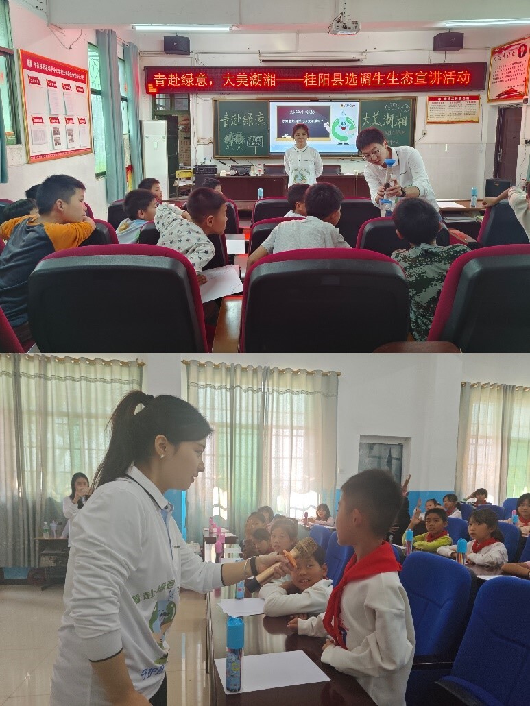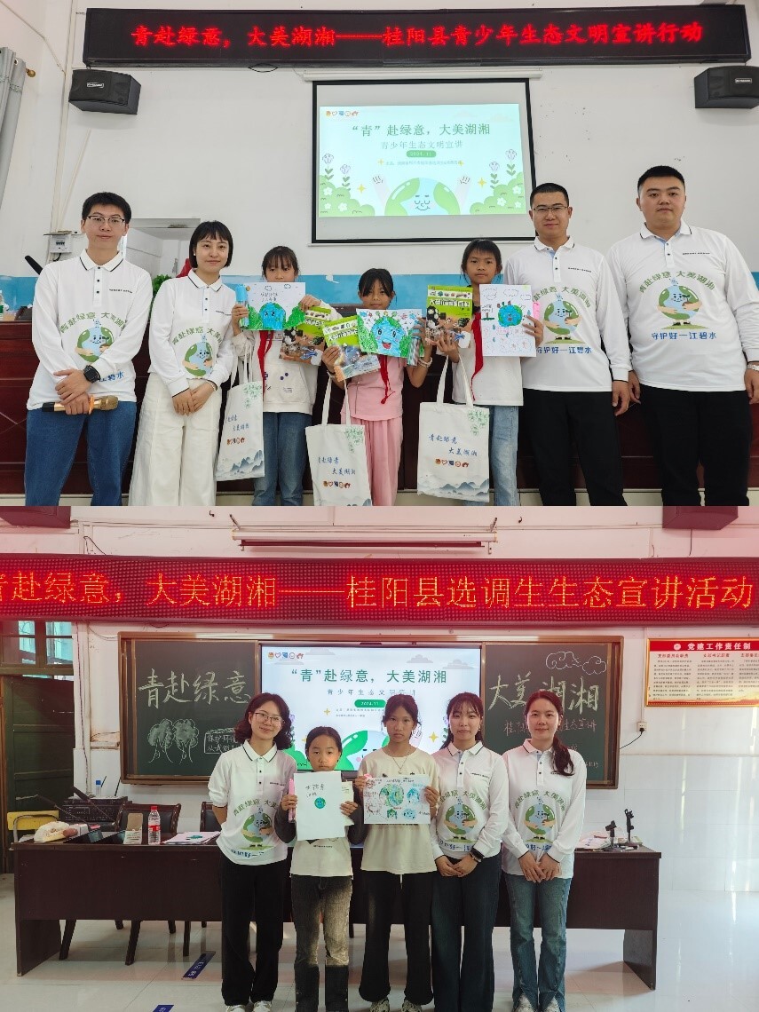 新桂阳11月14日讯(通讯员 余志斌 杨壮壮 邓雷)为在青少年群体中传播绿色发展理念,推进水资源保护及生态环保知识进校园,11月13日,我县2020届、2022届、2023届、2024届县选调生“桂在行动”宣讲团联合湖南少年儿童出版社、桂阳县科学技术协会,在桂阳县流峰镇中心学校、和平镇中心学校开展“青赴绿意,大美湖湘——桂阳县青少年生态文明宣讲行动”,共计150余名青少年参加本次活动。