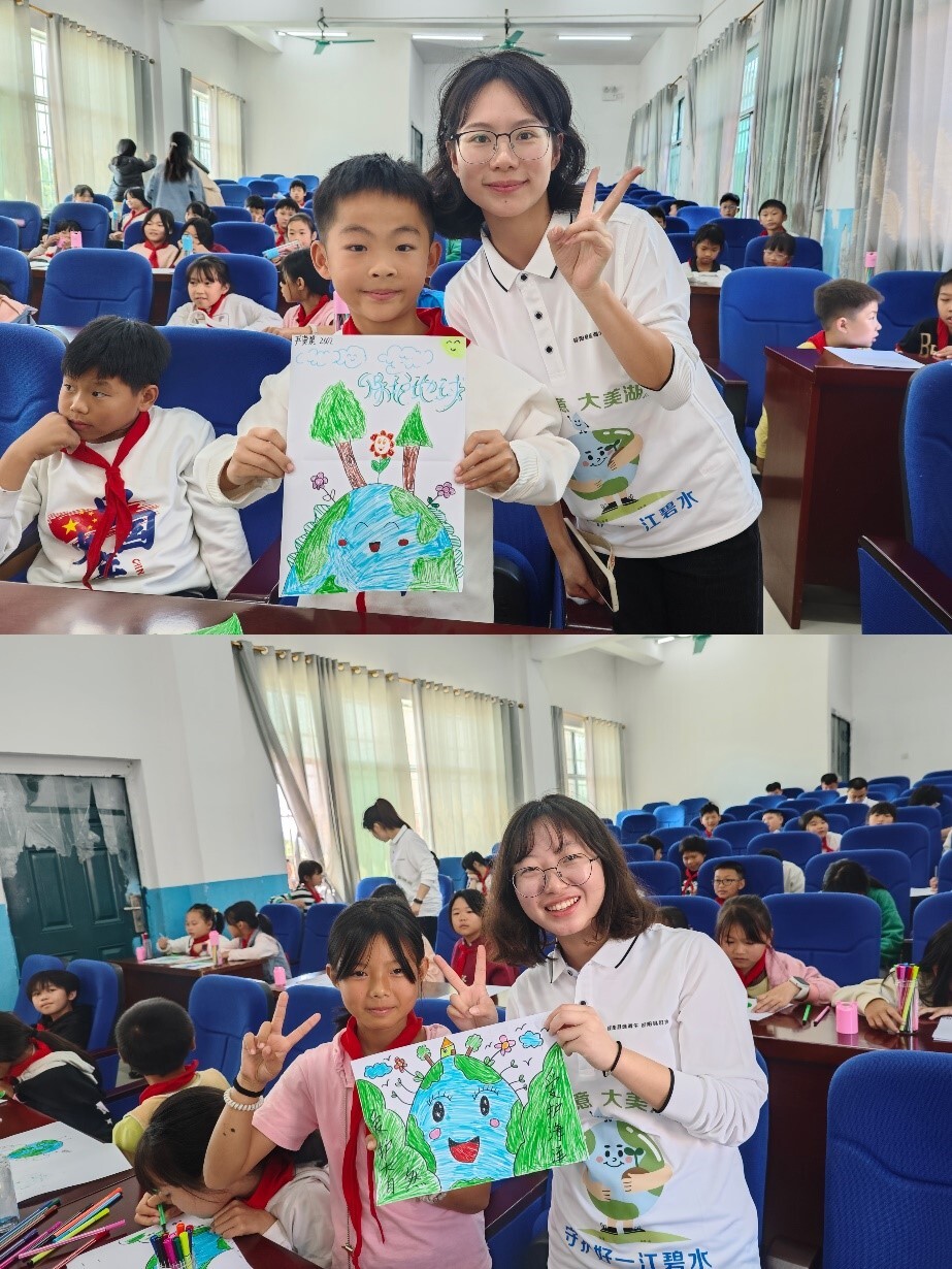 宣讲结束后,“桂在行动”宣讲团组织现场学生举行了“环保知识有奖竞答”“绿意地球,绘出精彩”创意绘画和“帮助长江小江豚找妈妈”小游戏等活动。“世界地球日为每年的几月几日?”“有哪些保护生态环境的方法?”“湖南三湘四水是哪四水?”等问题激发了学生们的参与热情。一幅幅巧手绘心、色彩斑斓、风格各异的图画展现出了学生们心目中美丽地球和保护河流的生动场景。