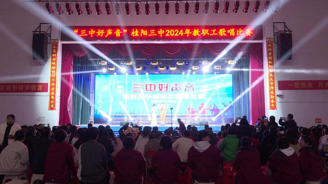 新桂阳12月6日讯(记者 刘克坚)为进一步展示学校教职工的风采,营造更加浓厚的校园文化氛围,12月5日晚,桂阳三中“三中好声音”教职工歌唱比赛决赛举行。