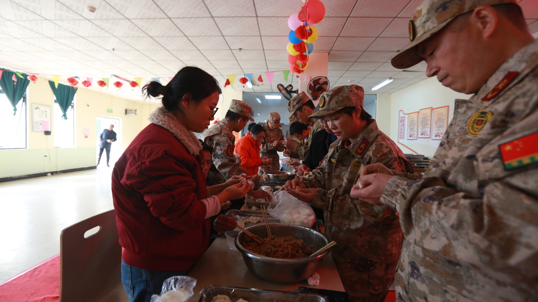 在县中心敬老院,县人武部官兵和老人们聚在一起聊家常、包饺子,安静的敬老院一下子热闹起来。大家围坐一起,边包饺子边交流。一会儿工夫,一张张饺子皮在一双双巧手下变身皮薄馅大的饺子。下锅后,热腾腾的饺子香气扑鼻。大家一块吃着饺子,现场洋溢着“家”的温馨,老人们笑在脸上乐在心里。