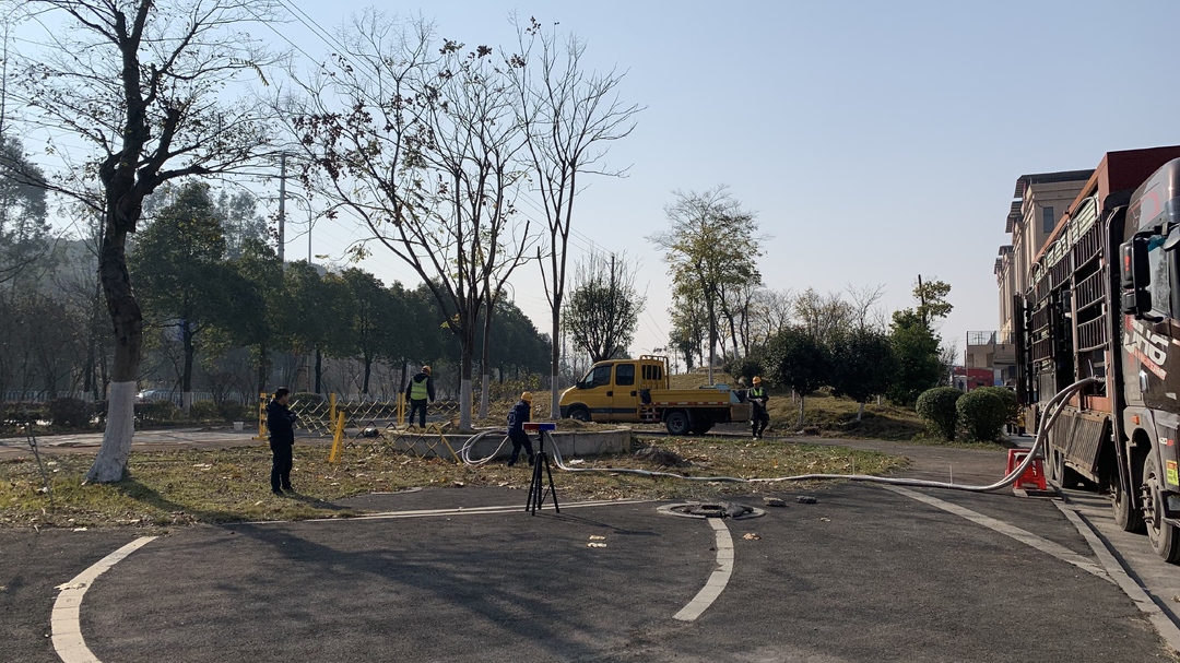 在湘南国际物流园的一处供水管网枢纽处,工作人员早已忙碌开来,他们身着工作服、头戴安全帽,全神贯注调试连接高压冲洗装置。随着冲洗装置连接完毕,装置发动,高强度的脉冲波对管壁内积累的污垢、铁锈以及各类杂质进行强有力的冲刷,就如同给供水管网来一场深度“大扫除”,让洁净的自来水顺畅地流入千家万户。