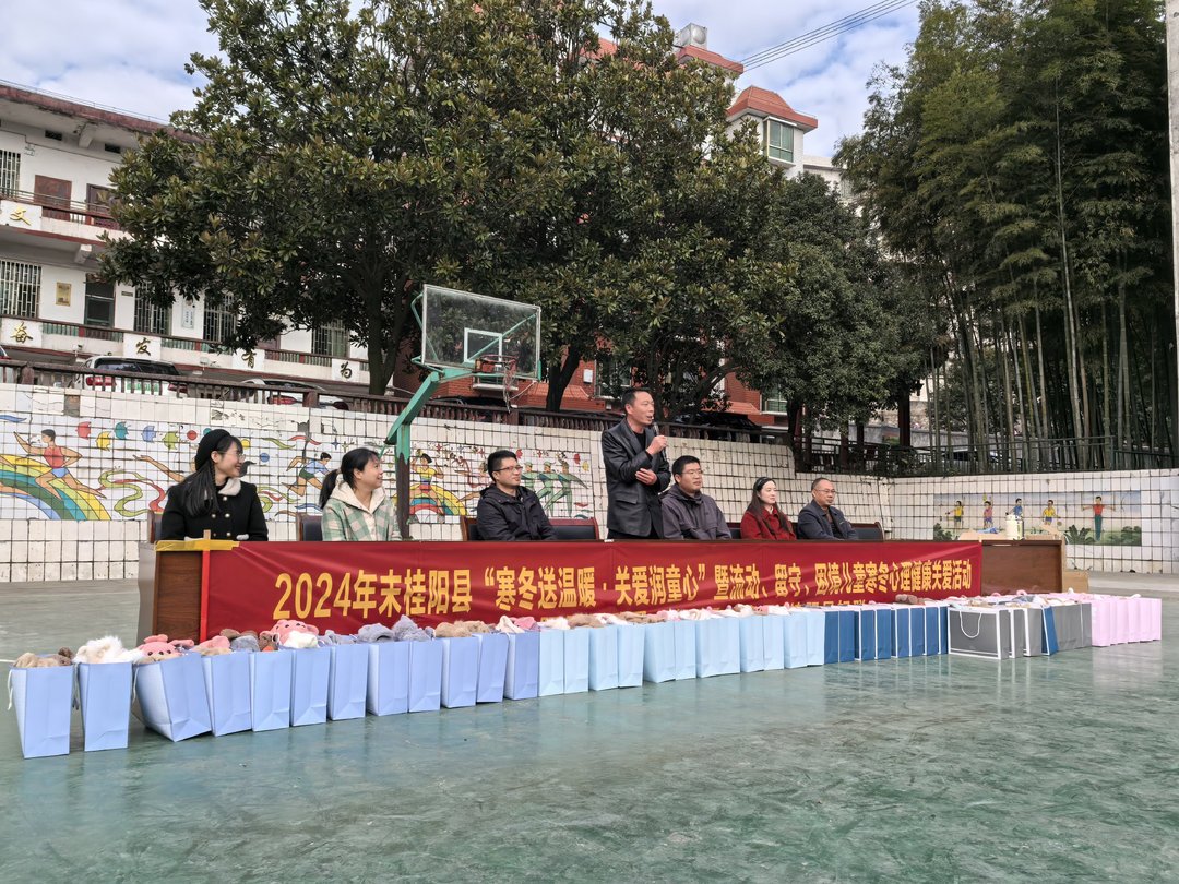 新桂阳12月25日讯(通讯员 蒋荣娟 周亮)寒冬已至,温暖先行。为进一步做实做细儿童关爱服务工作,积极响应民政部“寒冬送温暖”专项行动的号召,保障我县流动、留守、困境儿童安全温暖过冬。近日,县民政局联合未成年人保护工作领导小组成员单位县教育局、县妇联及部分社会组织在荷叶镇中心校开展2024年末“寒冬送温暖·关爱润童心”暨流动、留守、困境儿童寒冬心理健康关爱活动。