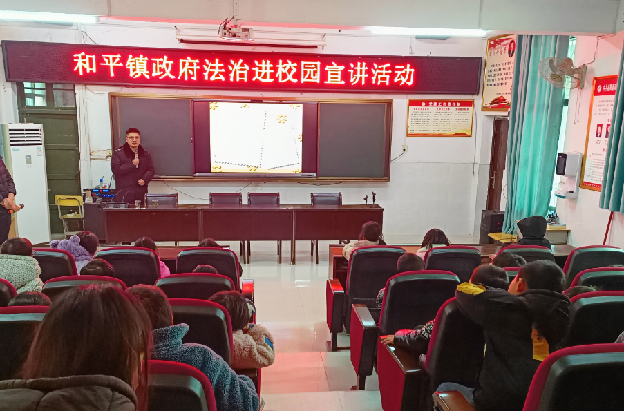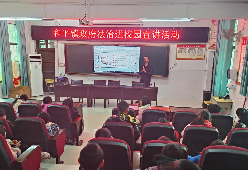 新桂阳12月26日讯(通讯员 黄沛东 陈晨)为增强青少年法律意识和安全意识,共同营造和谐校园、平安校园,进一步提高学生学法、懂法、守法、用法的能力,12月25日上午,和平镇人民政府普法宣讲小分队来到和平镇中心学校开展法治进校园普法宣讲活动。