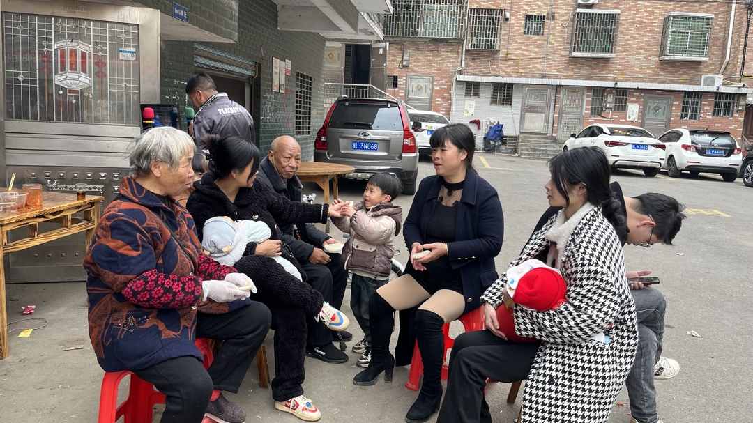 活动现场,居民们分工明确、各司其职,烧柴火、蒸糯饭、压糍粑,空气中弥漫着浓郁的糯米香。随后,大家围成一团,品尝热气腾腾的糍粑、畅聊过往收获与感悟、展望新年愿景。