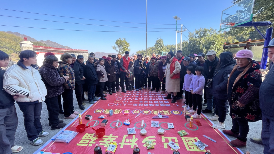 幸福套圈活动共吸引了百余名村民参与,所设奖品包括生活用品、米面粮油等物品。村民只需站在指定位置,将套圈扔中物品,便可将套中的东西免费带回家。此外,为关照村里的留守儿童,活动还增设知识问答环节,孩子们只要答对问题,就能获得一本儿童书籍。这些活动不仅让村民在游戏中收获快乐、感受幸福,也让他们真切感受到关心和关爱。