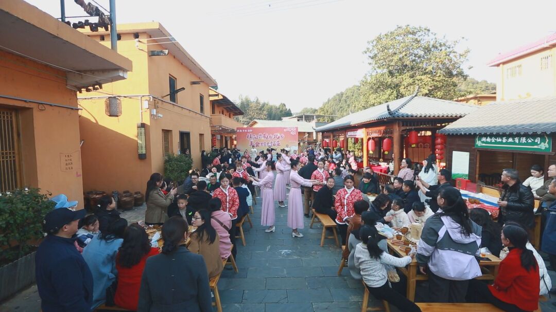 台下,美食展示区一字排开,饺粑、糍粑、油噍、蛋散、麻糯噍、芝麻花根、麻圆、绦环等桂阳传统名小吃蕴含着家的味道,让人垂涎欲滴。一道道美食,不仅是味蕾的享受,也是文化的载体,无不蕴含着一方水土的独特基因和生活智慧。“闻香而来”的游客们品小吃、寻年味,一饱口福,乐享“寻味之旅”。