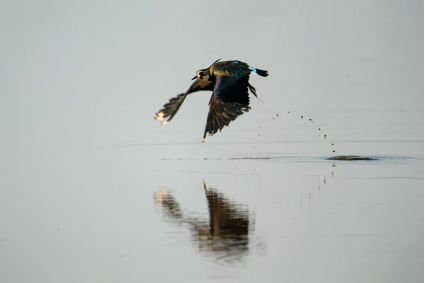 “凤头摇曳若旌旗,绿锦绒云做彩衣”的“三有”保护鸟类凤头麦鸡正在悠闲地散步觅食,头黄腹白尾巴短,翅膀暗绿闪金光,冠羽反曲似独角,举止间优雅。
