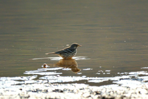 首次亮相舂陵国家湿地公园的“新稀客”黄腹鹨则在水中清洗嬉戏,为平静的水面增添了一份灵气与活力。