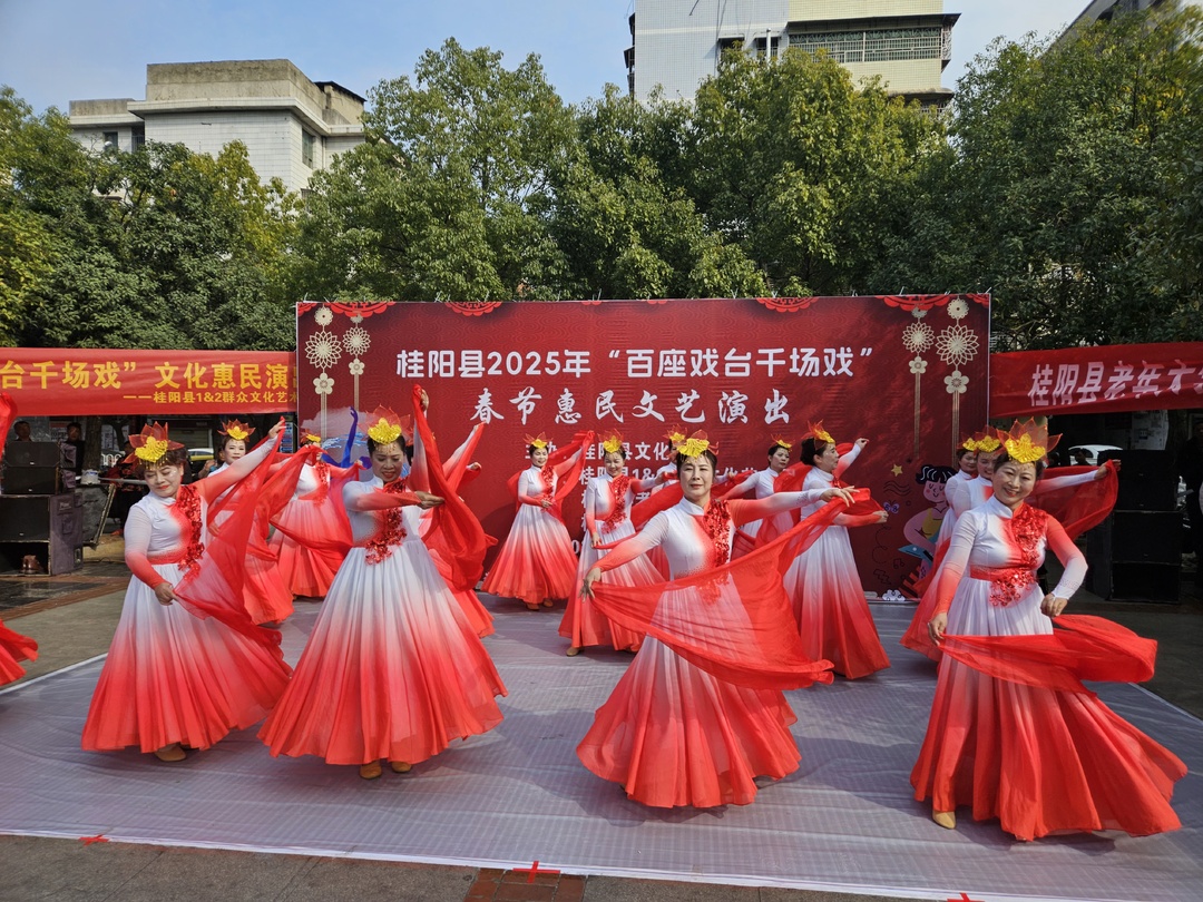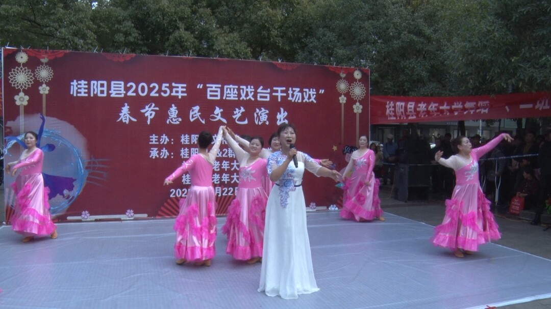新桂阳1月23日讯(记者 李玮嘉)1月22日,县文化馆联合县1&2群众文化艺术团、县老年大学在蔡伦广场开展2025年“百座戏台千场戏”春节惠民文艺演出活动,为广大群众送上精彩文化盛宴,营造出浓厚的节日氛围。