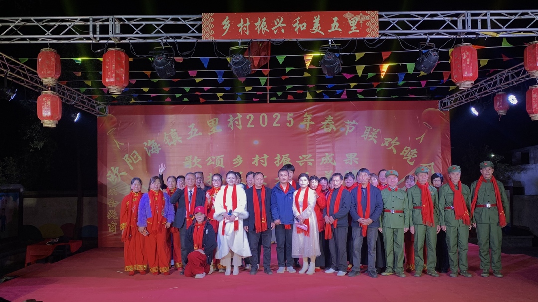 新桂阳1月24日讯(记者 曹诗灏)1月23日,欧阳海镇五里村举办2025年春节联欢晚会,吸引众多村民及周边群众前来观看。