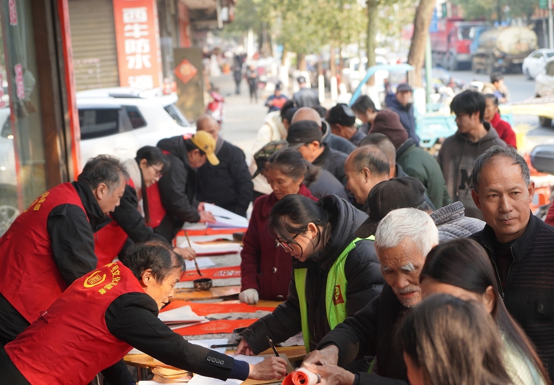 新桂阳1月27日讯(通讯员 何旭燕)无联不成春,有联春更浓。随着春节脚步临近,年味渐浓,为弘扬中华优秀传统文化,营造欢乐祥和的节日氛围,丰富广大群众精神文化生活,1月22日上午,太和镇民政社工站联合县文化馆书法协会开展了“书画进万家”送春联送祝福活动。