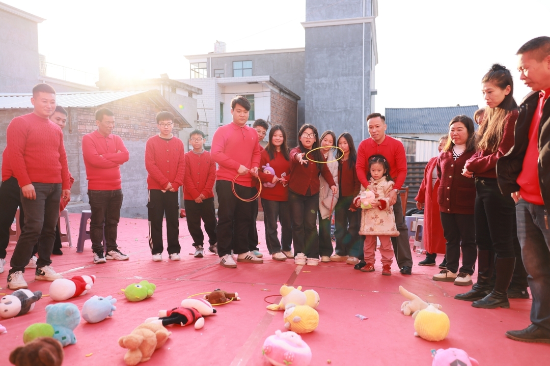 当天,田湾村处处洋溢着浓厚的节日气息,联欢会在欢声笑语中拉开帷幕。这场春节年会,不只是一次普通的聚会,更承载着深厚的情感与文化内涵。村里的年轻人踊跃登台,为长辈们献上精心筹备的节目。现场炒年货、抽奖等趣味游戏轮番上演,村民们积极参与,现场气氛其乐融融。返乡过年的小谢感慨地说:“现在国家政策好,咱们农村生活越来越好。过年回家,就是要多陪陪父母,把孝道传承下去。”他的话语道出了众多年轻人的心声,也体现了农村家庭对亲情纽带的珍视。