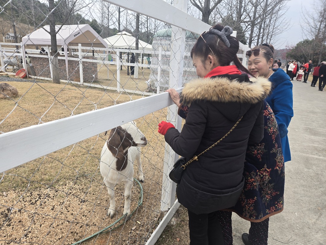 1月30日,正值农历大年初二,望湖生态庄园人流如织,不少游客以家庭亲子出游的方式前来体验山野休闲时光。在生态动物园区,游客们乘坐环岛小火车惬意穿梭,孩子们兴奋地与灵动活跃的波尔山羊互动。在热情敏捷的鸵鸟、色彩靓丽的孔雀等“动物大明星”面前,游客们纷纷拿出手机拍照互动,记录欢乐时光。生态庄园里依山势而建的彩虹滑道在展现自然风景的同时,也为追求“刺激”体验的游客提供了机会,父母带着小朋友们在自然风光中“呼啸而下”,体验游玩乐潮,尽情享受亲子时光。
