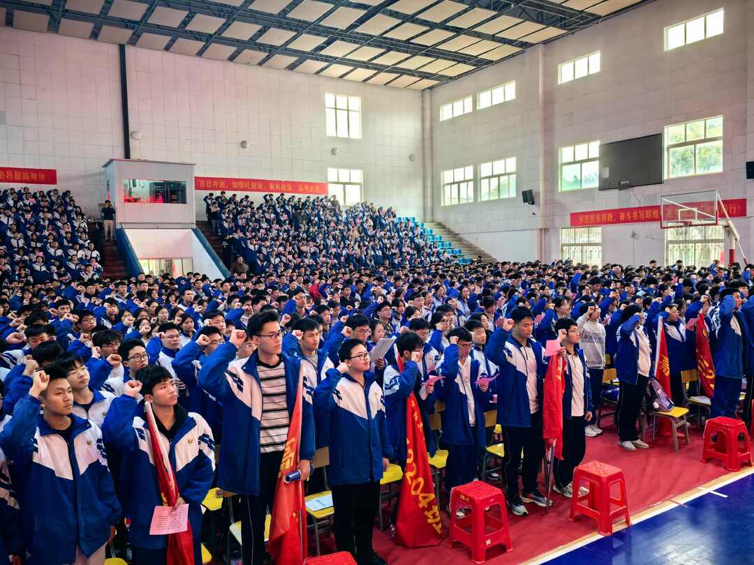 新桂阳3月4日讯(记者 刘娣)3月3日,桂阳三中体艺馆内气氛热烈而庄重,2025届高三师生齐聚一堂,举行高考百日誓师大会。