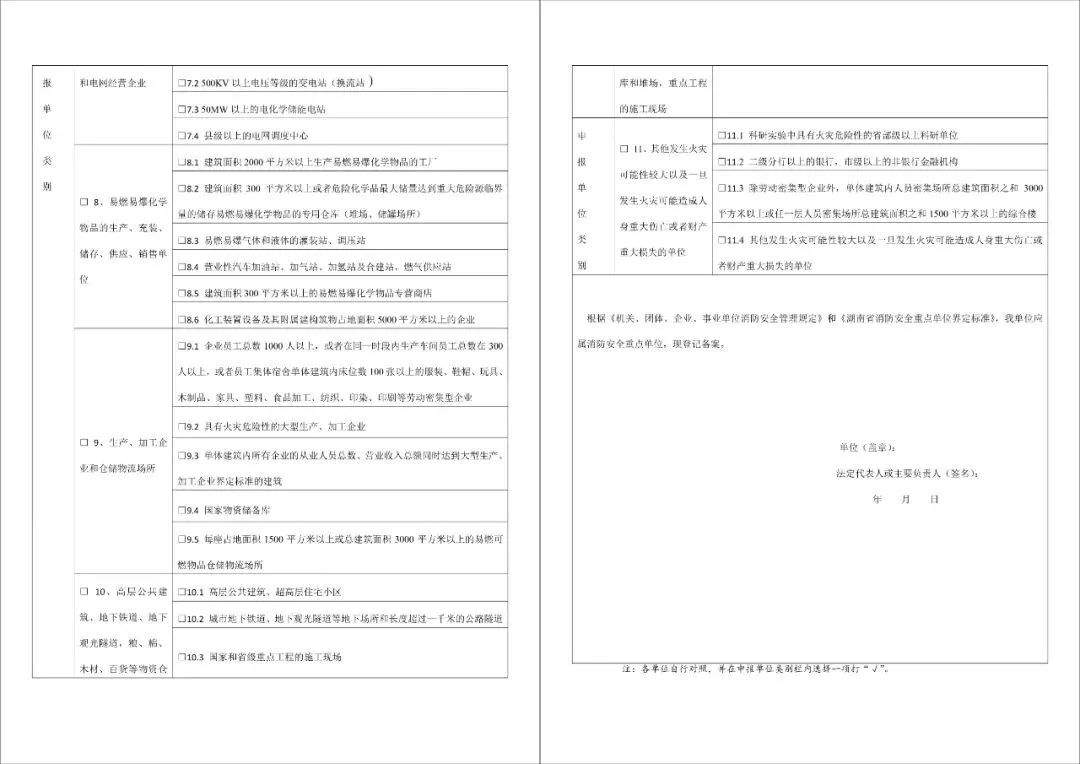 (二)严格对照《湖南省消防安全重点单位界定标准》,根据下列要求规范做好申报备案工作: