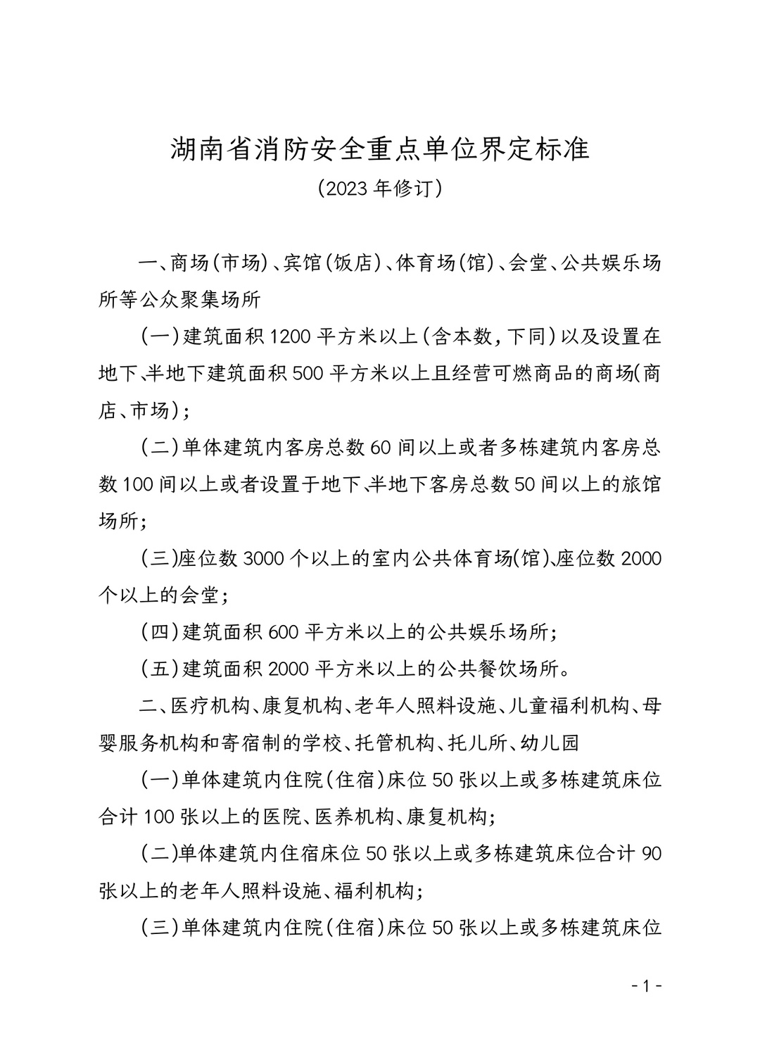 为进一步规范全县消防安全重点单位的监督管理工作,推动单位落实消防安全主体责任,依据《中华人民共和国消防法》、《机关、团体、企业、事业单位消防安全管理规定》等法律法规,现将《湖南省消防安全重点单位界定标准》向社会进行公布,请全县各社会单位对照标准,认真自查,凡符合界定标准的单位,主动向桂阳县消防救援大队进行申报登记。