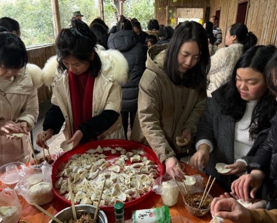 随后,趣味游戏环节将现场气氛推向了高潮。随着一声哨响,拔河比赛开始,队员们齐心协力,加油声、欢笑声交织在一起,展现了巾帼不让须眉的力量与风采;蒙眼敲锣游戏中,参赛者转得头晕目眩仍奋勇向前,一次次成功敲响铜锣,赢得了阵阵掌声;包饺子比赛最是温馨,姐妹们八仙过海各显神通,巧手翻飞间,月牙饺、元宝饺、玫瑰花饺在案板上渐次绽放。