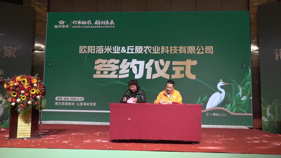 新桂阳3月10日讯(记者 谭明艳)今天上午,海米世家10万亩绿色食品原粮基地订单签约大会暨桂阳县10万亩绿色食品原料(水稻)标准化生产基地建设推进会召开,并启动“国家储备粮源基地”建设订单签约工作。