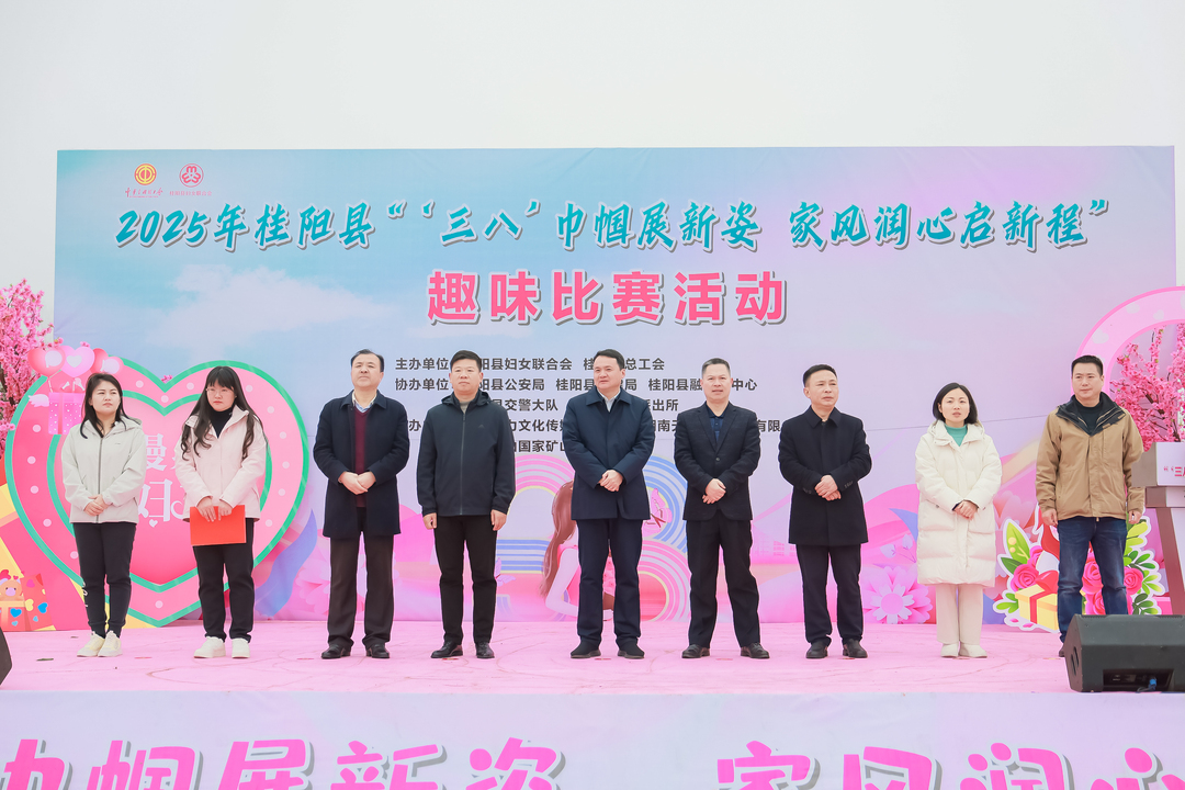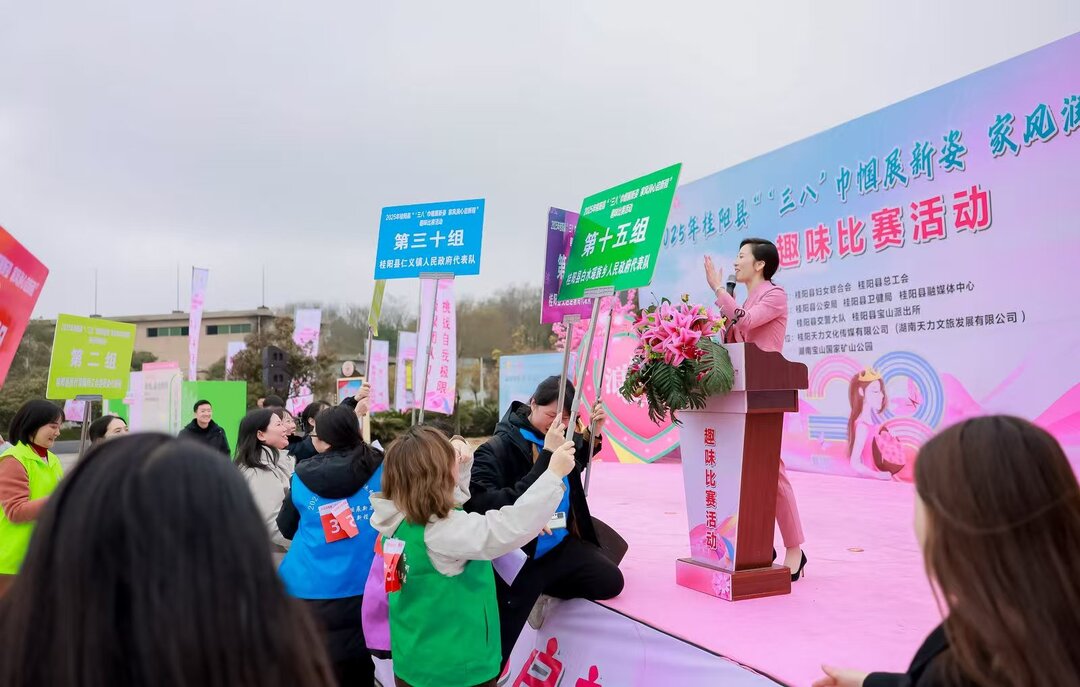 新桂阳3月10日讯(记者曹诗灏 常凯 欧阳宇轩 张珂荣 )今天上午,我县在湖南宝山国家矿山公园博物馆前坪举办“‘三八’巾帼展新姿,家风润心启新程”趣味比赛活动。来自县直机关、乡镇(街道)的40支代表队、近400名女性干部职工齐聚一堂,通过趣味运动与家风知识比拼,展现新时代女性的蓬勃朝气与团结奋进的精神风貌。县委副书记、统战部部长李雄参加活动。