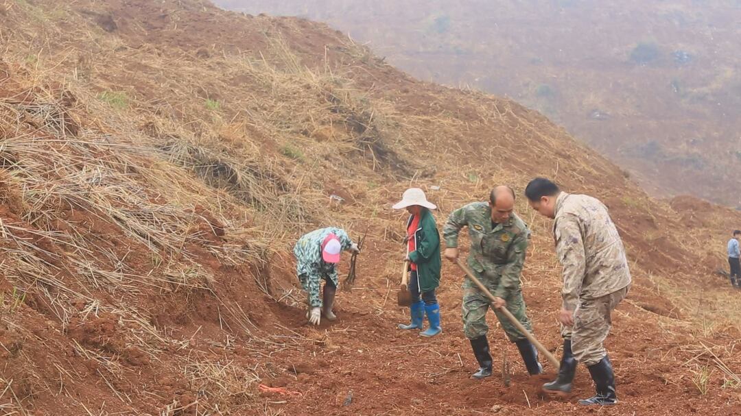 新桂阳3月14日讯( 记者 李子璇 何禹军 )眼下正值春耕春种关键时节,我县种植户们迎来了油桐种植热潮。县人武部组织民兵开展助农行动,为农忙种植添力,军民共同栽种“家门口”的共富苗。