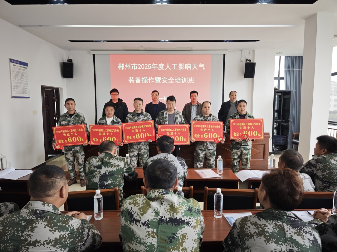 开班仪式上,郴州市气象局党组成员、副局长李辉指出,要清醒认识气候变化复杂性与防雹工作艰巨性,明确2025年人工影响天气工作重点任务,认真学习理论知识、提高安全意识和实际操作水平。会议还对我县过去一年中表现优秀的人工影响天气作业人员进行了表彰。