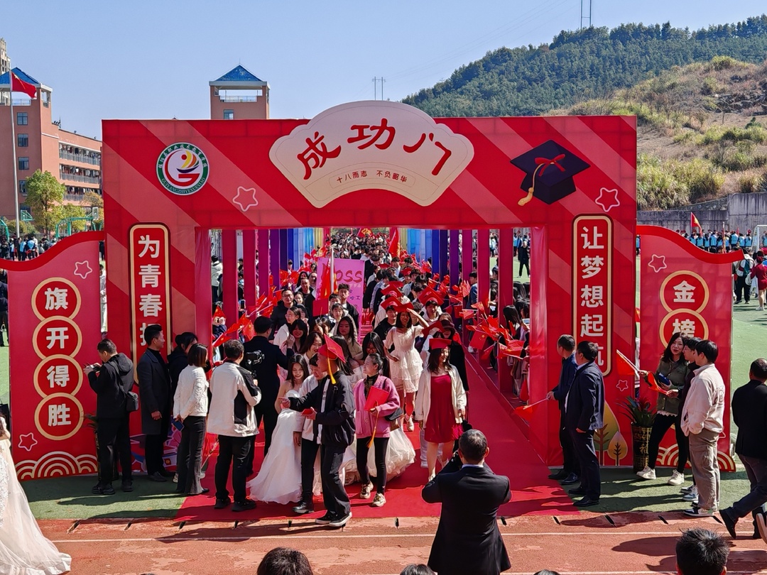高一、高二学子还为高三学子表演了精彩的节目,送上最美的祝福。最后,高三学子在老师和家长的陪同下,从成人门走向成功门,迎接十八岁的新挑战,去努力书写属于自己的精彩篇章。