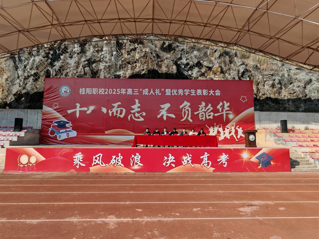 新桂阳3月20日讯(记者 周立志)3月19日,县职校举行“十八而志,不负韶华”2025年高三“成人礼”暨优秀学生表彰大会。