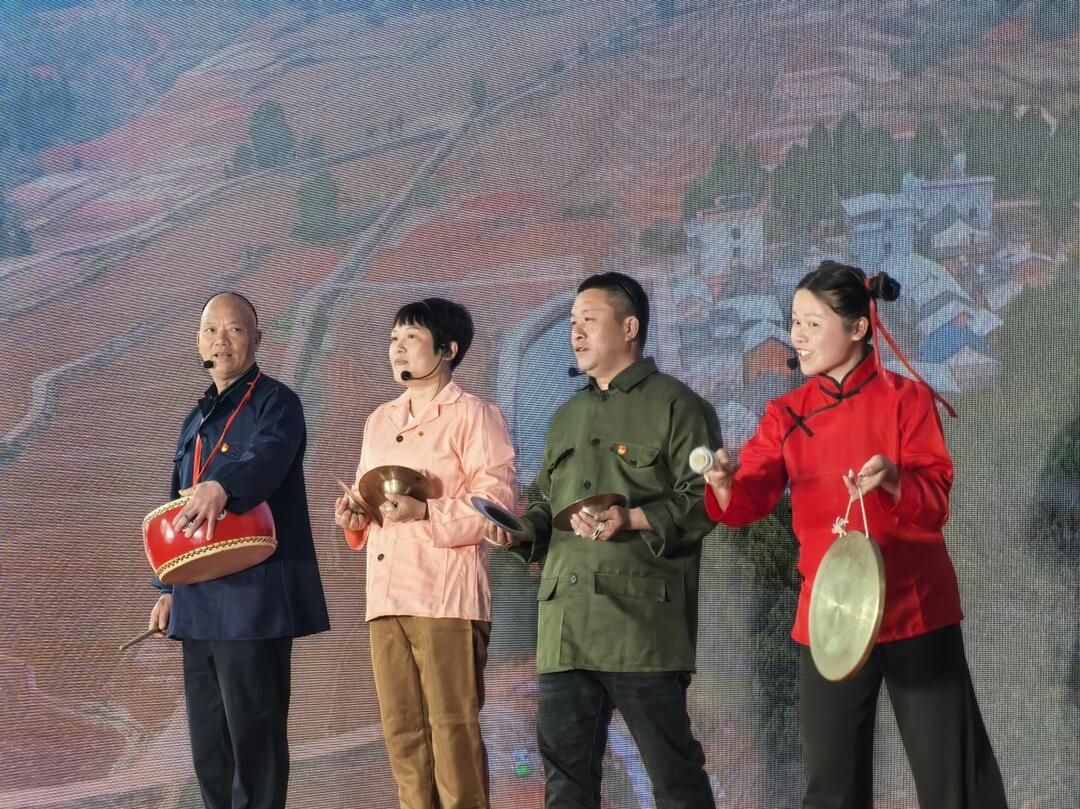 仁义镇银河村副支书陈祥礼以诙谐幽默的语言,将仁义镇14个村(社区)的发展特色创编成三句半《仁义赞》,赢得台下阵阵掌声。随后,白云村村干部及群众自编、自导、自演的小品《白云村的美丽屋场》,生动展现党员干部在乡村风貌提质工作中,面对拆危拆杂阻力时的智慧与勇气,体现乡村振兴进程中的真实场景。