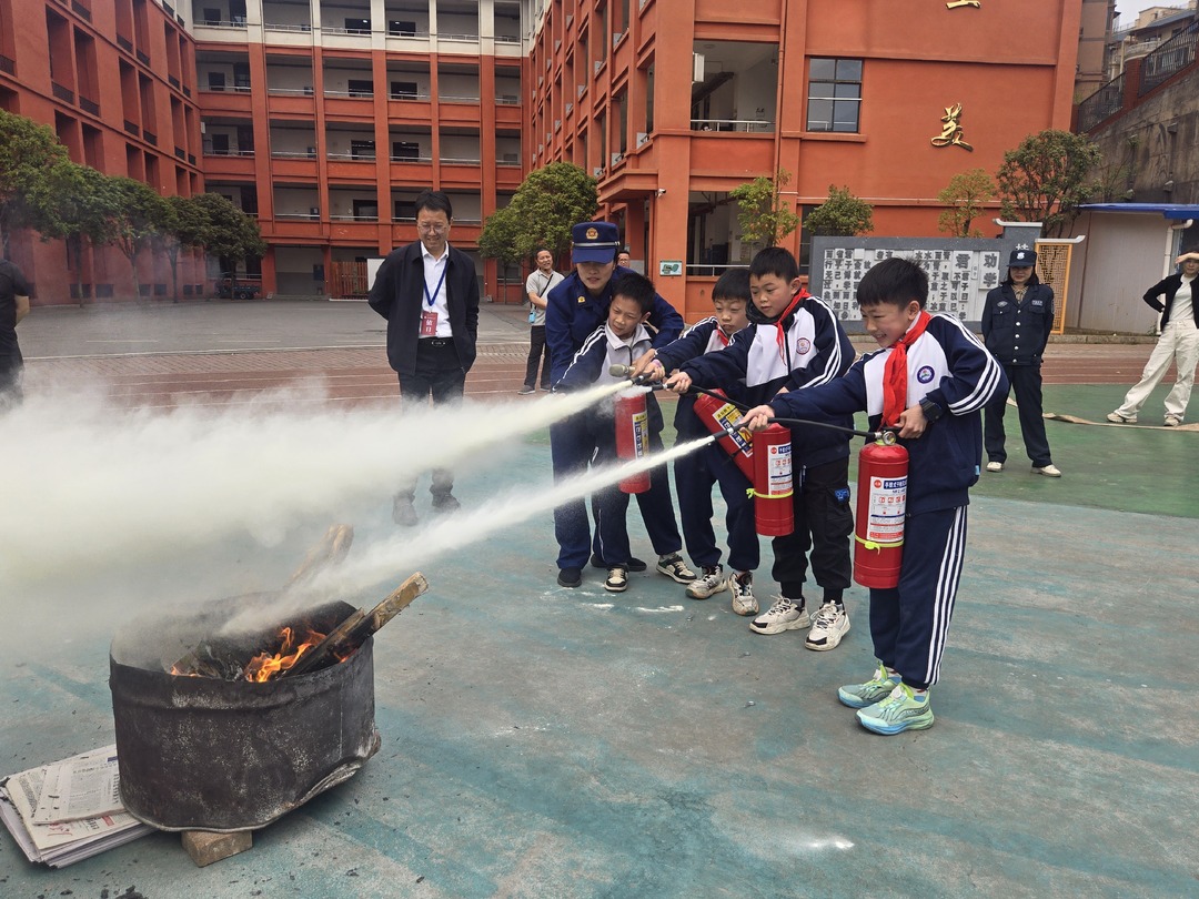 随着急促的警报声响起,消防安全疏散演练开始,学生们用湿毛巾捂住口鼻,弯腰低姿,有序从安全通道向学校操场撤离。用时不到4分钟,全校师生全部安全疏散完毕。消防宣传员还邀请在场师生体验消防灭火器、高压水枪灭火实操,学习正确应对火情的方法。