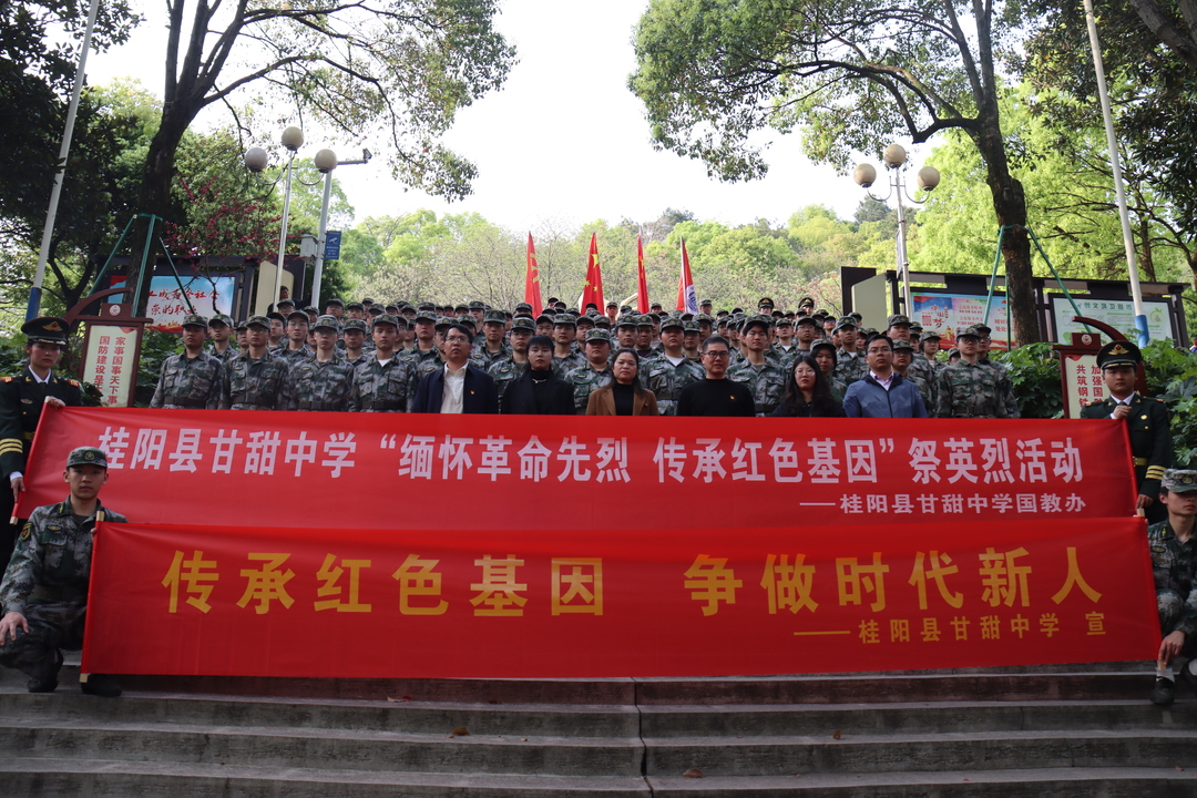 新桂阳4月3日讯(通讯员 谷勇 李统沛)为传承红色基因,强化国防教育,4月2日,甘甜中学教师党员代表及高一、高二国防教育特色班全体学员,前往东塔公园欧阳海烈士雕像前,开展“缅怀革命先烈,传承红色基因”清明祭扫活动。