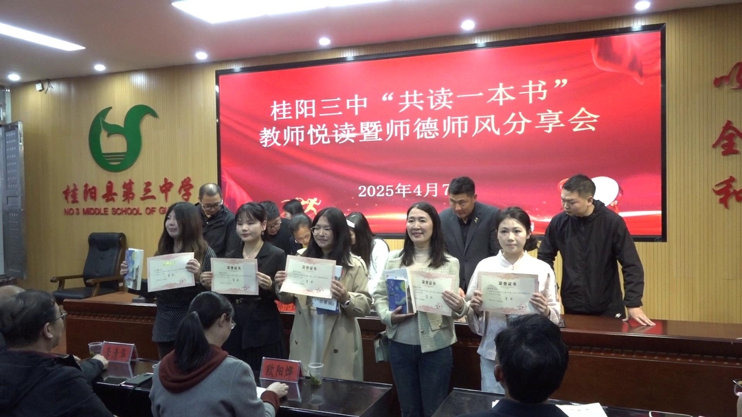 新桂阳4月8日讯(记者 邓明俊)4月7日,桂阳三中举行“共读一本书”教师悦读暨师德师风分享会。