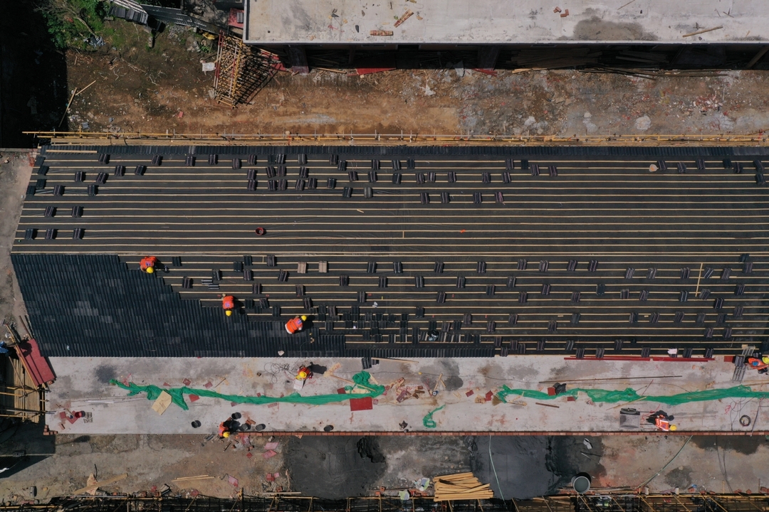 黄沙坪独立工矿区提质改造工程项目技术负责人谭倬介绍:“目前约 200 名工人参与施工。为加快进度,项目部增加了人力、材料和设备投入,延长夜间施工时间。预计 5 月初,13 栋新建单体工程将全面实现主体结构封顶,随后开展装饰装修及水电安装工程。”