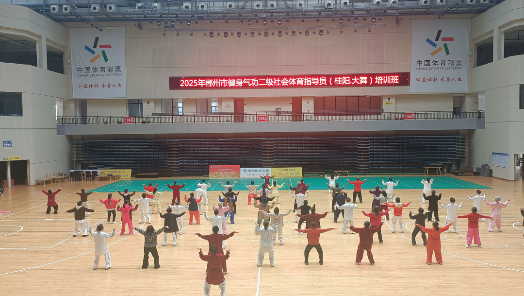 新桂阳4月25日讯(通讯员 李芳红)4月25日,2025年郴州市健身气功(大舞)二级社会体育指导员培训(桂阳站)在桂阳县全民健身中心主馆开班,全县60余名学员参加。